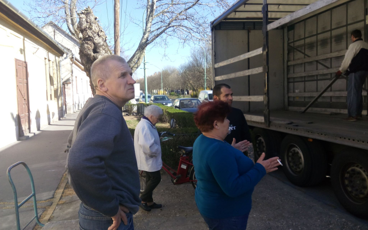 A szállítmány érkezését már nagyon várták a helyi szeretetszolgálat önkéntesei, akik csak egy telefonhívásra várva készültségben voltak napok óta. A sok szorgalmas kéz gyorsan leemelte a kamionról a zsákokat, dobozokat és a szeretetszolgálat telephelyének két helyiségét is megtöltötték velük.