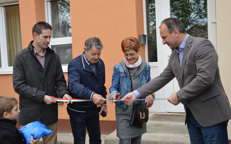 Az átadó ünnepségen Dr. Majoros Györgyné közös képviselő asszony és Szamosi Endre, a körzet önkormányzati képviselője közösen vágták át a nemzeti színű szalagot.