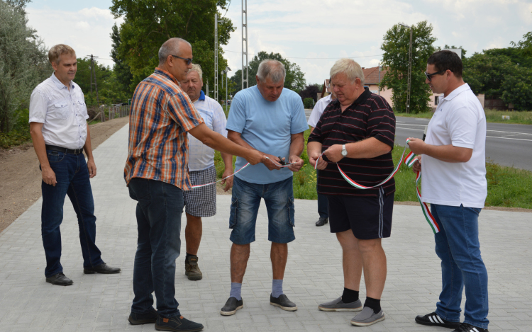 A teljesen új járdaszakasz és a buszmegálló öböl, valamint az ehhez kapcsolódó kerékpár tároló ünnepélyes átadására a mai napon (július 11-én) került sor.