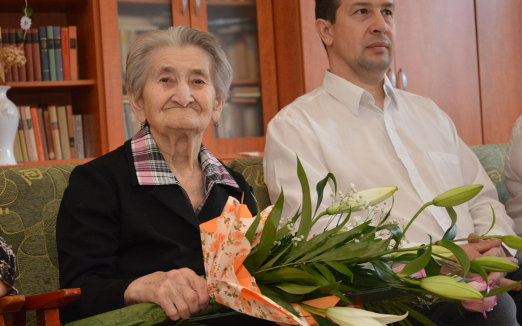 A szépkorú asszonyt városvezetésünk nevében Balla László alpolgármester kereste fel a Szivárvány Személyes Gondoskodást Nyújtó Intézmény Nádasy Utcai Otthonában április 7-én délelőtt, hogy az otthon lakóival, vezetőségével és munkatársaival együtt felköszöntse Őt a kivételes ünnepnap alkalmából.