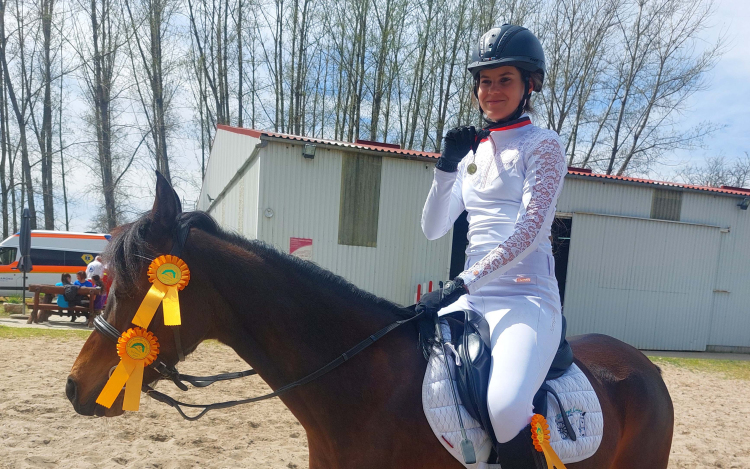 Batthyány Lajos Általános Iskola 7.a osztályos tanulója Dobos Eszter három versenyszámban állt rajthoz Harriett nevű lovával.
