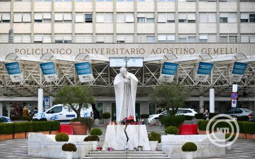 Matteo Bruni hozzátette, hogy Ferenc pápa szombaton húsz percig imádkozott a Gemelli-klinika pápai kórterméhez tartozó kicsi kápolnában.