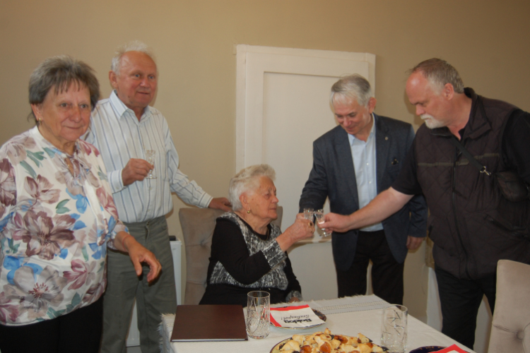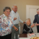 A kivételes ünnep alkalmából városvezetésünk nevében Balla László alpolgármester és a körzet önkormányzati képviselője Bense Zoltán keresték fel a szépkorú asszonyt otthonában, április 17-én hogy méltóképpen felköszöntsék Őt.