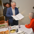 A kivételes ünnep alkalmából Balla László alpolgármester és Horváth Gábor önkormányzati képviselő keresték fel otthonában, hogy a melegszívű köszöntés mellé nagy csokor virágot adjanak át, valamint egy emléklapot, melyet Orbán Viktor miniszterelnökünk látott el kézjegyével.