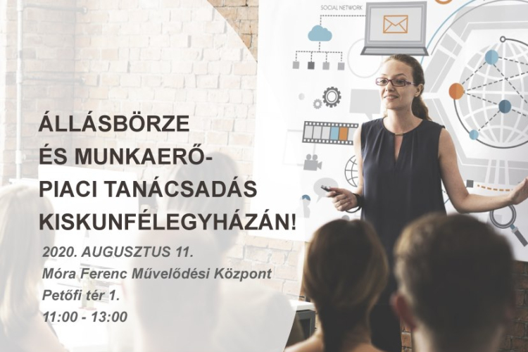 2020. augusztus 11-én, kedden 11 órától állásbörze és munkaerőpiaci tanácsadás lesz Kiskunfélegyházán a Móra Ferenc Művelődési Központban.