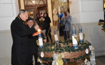 A hitet jelképező első gyertyaláng után fellobbant városunk adventi koszorúján december 8-án a reményt jelképező második gyertya is.