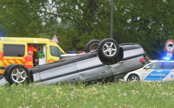A körforgalom közepébe csapódott, majd fejre állt egy autó Félegyházánál hétfő dél körül. A balesetben egy nő könnyebben megsérült, őt a kiérkező mentők ellátták.