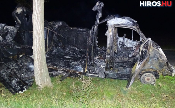 Kiégett egy kisbusz Kecskemétnél