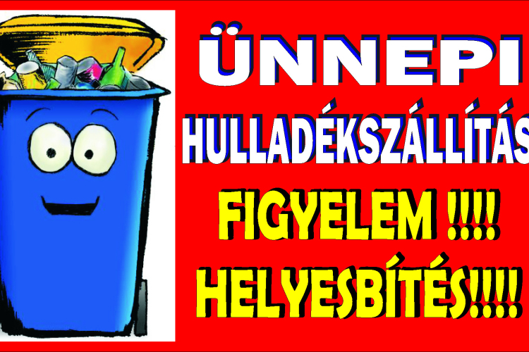 Figyelem! A Szuperinfó újságban TÉVESEN JELENT MEG a hulladékszállítás időpontja!