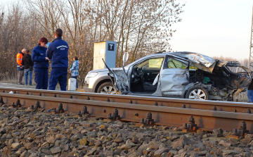 A sofőr meghalt, utasa megsérült, amikor egy személyautó vonattal ütközött össze egy vasúti átjáróban Kistelek közelében csütörtökön.