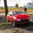 Csongrád felé haladt az Opel, amikor letért az útról, majd egy fának csapódott és megpördült. A gépkocsit vezető nő és hölgy utasa sérült meg a balesetben, őket a mentők kórházba szállították.