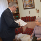 Irénke néni lánya, fia és annak felesége társaságában fogadta a kedves vendéget, aki a virágcsokor mellé Orbán Viktor miniszterelnökünk által aláírt Emléklapot nyújtott át ajándékba.