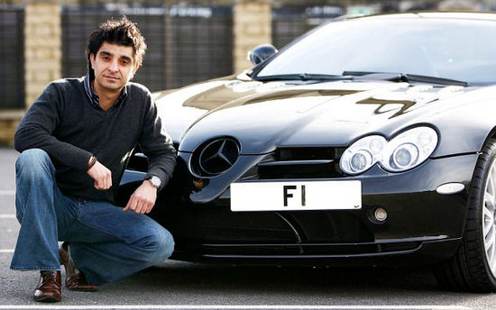 Afzal Kahn néhány éve hívta fel magára a figyelmet azzal, hogy átszámítva 150 millió forintért megvette az F1 feliratú rendszámot Nagy-Britanniában és fel is szerelte McLaren SLR-jére.