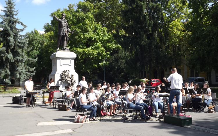 A Kiskunfélegyházi Ifjúsági Fúvószenekar térzenével szórakoztatta várost