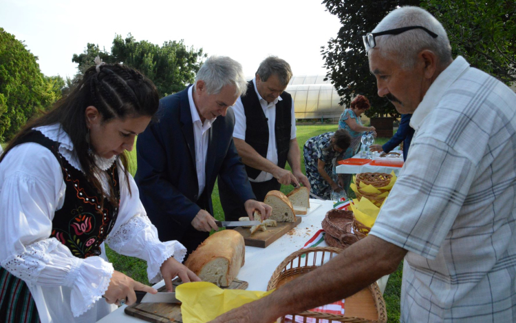 Az alpolgármester ünnepi beszédét követően Hajagos Gyula, a Szent István templom plébánosa áldotta és szentelte meg az új kenyeret, majd megszegve kis kosárkákban kínálták meg belőle az ünnepségen résztvevőket.