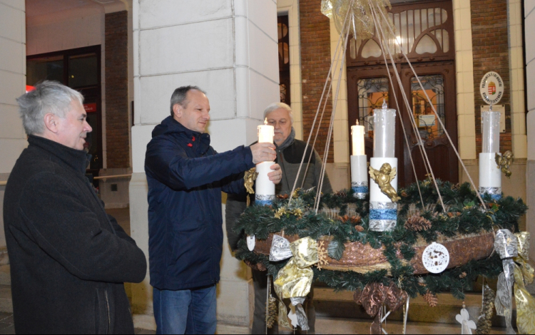 - A 2020-as év megpróbáltatásai után a reményt szimbolizáló gyertya fellobbanása egy szebb és könnyebb jövőt vetít számunkra előre, és bízunk abban, hogy magunk mögött hagyhatjuk az idei esztendő nehézségeit – mondta Csányi József polgármester a szűk körben tartott gyertyagyújtási eseményen, melyen rajta kívül Rosta Ferenc és Balla László alpolgármesterek vettek részt.