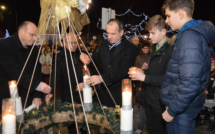 Csányi József polgármester a gyertyagyújtást követő pillanatokban áldott, békés karácsonyt és boldog új esztendőt kívánt városunk minden lakójának. Megköszönte azoknak a segítségét, akik az ünnepi rendezvények szervezésében, lebonyolításában közreműködtek, külön kiemelve a támogató cégeket és vállalkozókat.