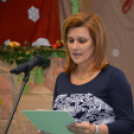 Már csak négyet kell aludnunk és itt van az év legszebb ünnepe, a Karácsony. A karácsony csodája nem a színes szalagokkal feldíszített ajándékokban rejlik. Nem is a díszes fenyőfa alatt találjuk. Ezt a csodát másutt kell keresni, máshol lehet megtalálni. Nincs belesütve a bejglibe, de még a mézeskalácsba sem. Ezt a csodát a kedves szavakban, az őszinte, szívből jövő jókívánságokban, szerető érzésben kell éreznünk. A következő 365 napban ezek a szavak fognak kísérni és ezek adnak erőt. Nem a csomagban lapuló tárgyak, hanem egy mosoly, egy jó szó, egy őszinte ölelés. Ez a karácsony csodája.” mondta Kaposiné Mészáros Ildikó tanárnő, aki a gyerekek és tanáraik által – az ünnepség fénypontjaként - előadott mesejátékot megálmodta és rendezte.