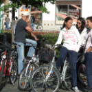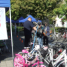 Fliszár Dóri reggei ébresztő tornája után - melyen 8-8:30 óráig vehettek részt a vállalkozó kedvűek - némi pihenő után megkezdődött a gyülekezés a Városháza előtt. A NOR-BIKE kerékpárosbolt kitelepült szervizével mindenki számára ingyenesen beállítja és megjavítja a bringákat a nap folyamán a Városházával szemben. A selymesi kerékpártúrázóknak is segített az paripák felkészítésében.