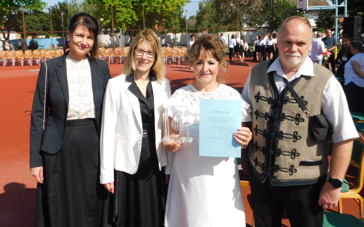 A Kiskunfélegyházi Batthyány Lajos Általános Iskola feladatkörében végzett lelkiismeretes, magas színvonalú, elhivatottsággal és példaértékű szorgalommal végzett munkájáért Batthyány-díjban részesült Nagyné Mészáros Erika Éva tanár.