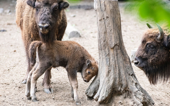 A jelenleg egyhetes bika születése után másfél órával már lábra állt és csatlakozott a vele együtt már ötfős európai bölény csordához.