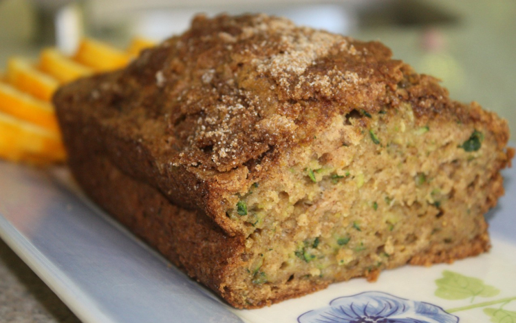 1. Felmelegítjük a sütőt 160ºC-ra. Megkenünk egy 900-gr nagyságú sütőformát (az enyém kb 10x25x8). Egy nagy edényben összekeverjük a lisztet, cukrot, szódabikarbonát, sót, a fahéjat és egy másikban a tojást, olajat, vanília-kivonatot és a szerecsendiót. Ezután keverjük össze a két tálban lévő hozzávalókat és adjuk hozza az írót majd forgassuk át jól.