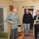 Guszti bácsi jó egészségben, mosolyogva fogadta - oldalán feleségével és Bence fiával - a kedves vendégeket, akik virágcsokorral és Orbán Viktor miniszterelnökünk által aláírt emléklappal köszöntötték a szépkorút.