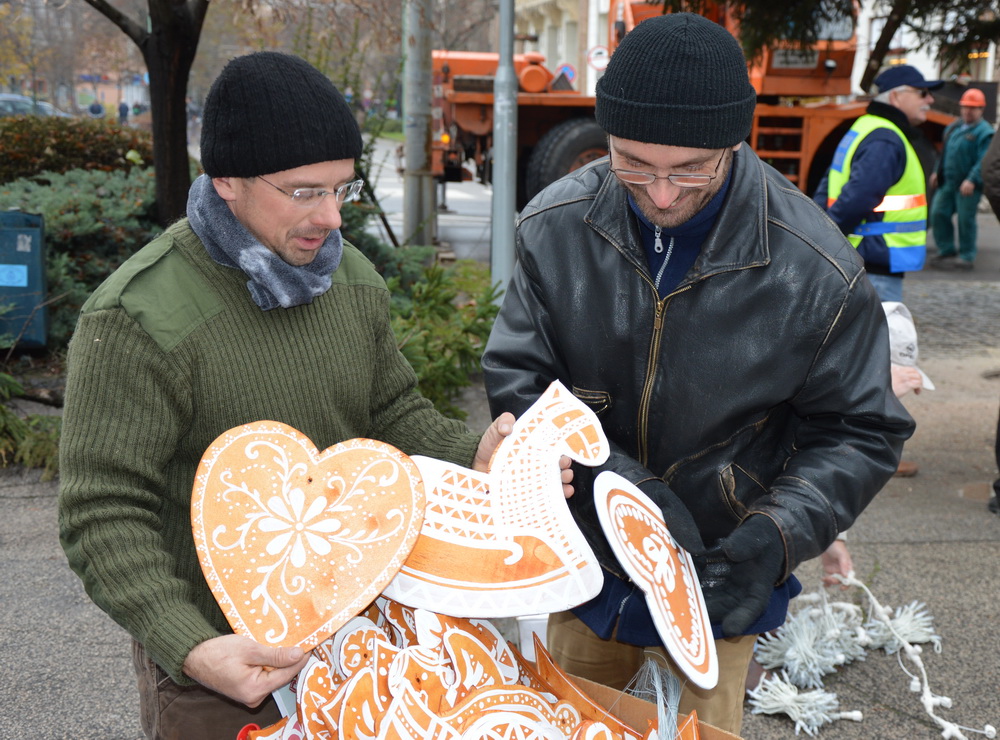 A fenyő díszeinek elkészítését, illetve felhelyezését a Holló László Képzőművészkör tagjai vállalták magukra. A fára a tavaly a KÖÁI Platán, Dózsa György, József Attila iskola tanulói készítette csillagok, gömbök, angyalkák is felkerülnek. Újdonságnak számít a korábbinál sokkal biztonságosabb sűllyesztett karácsonyfatalp, valamit az is, hogy a környezőfákra is díszek kerülnek.