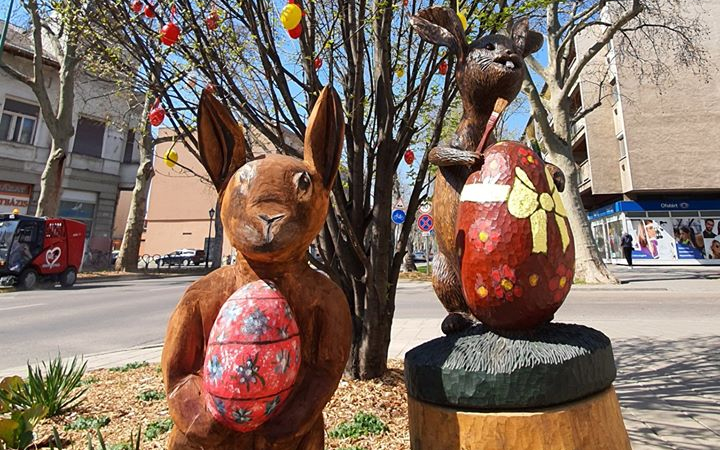 A közkedvelt húsvéti nyuszi páros idén csak egy rövid időre hirdethették a szabad levegőn a tavaszt és a megújulást.