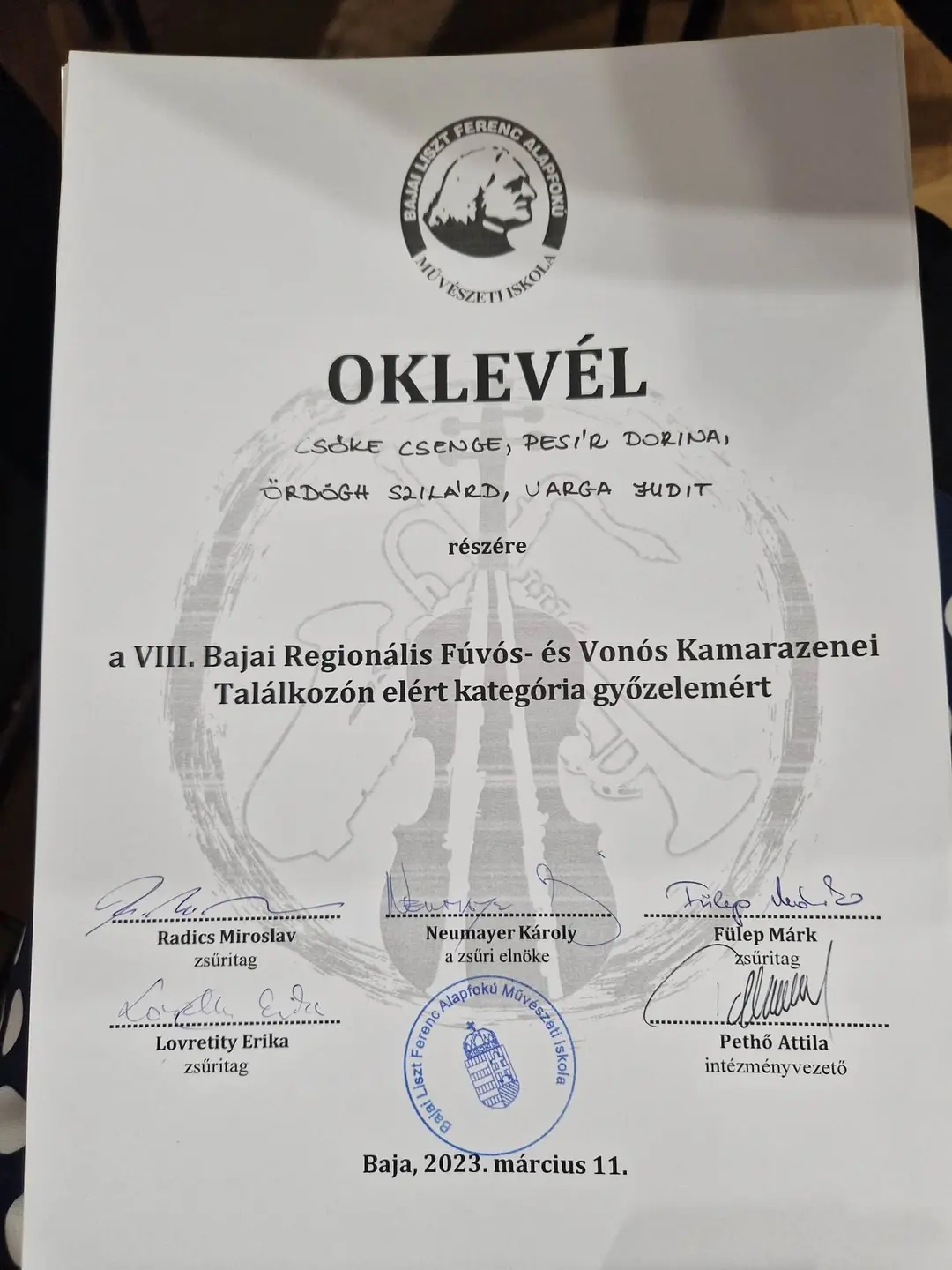 A Balázs Árpád Alapfokú Művészeti Iskola tanulói Baján jártak, ahol a VIII. Regionális Fúvós- és Vonós Kamarazenei Találkozón vettek részt.