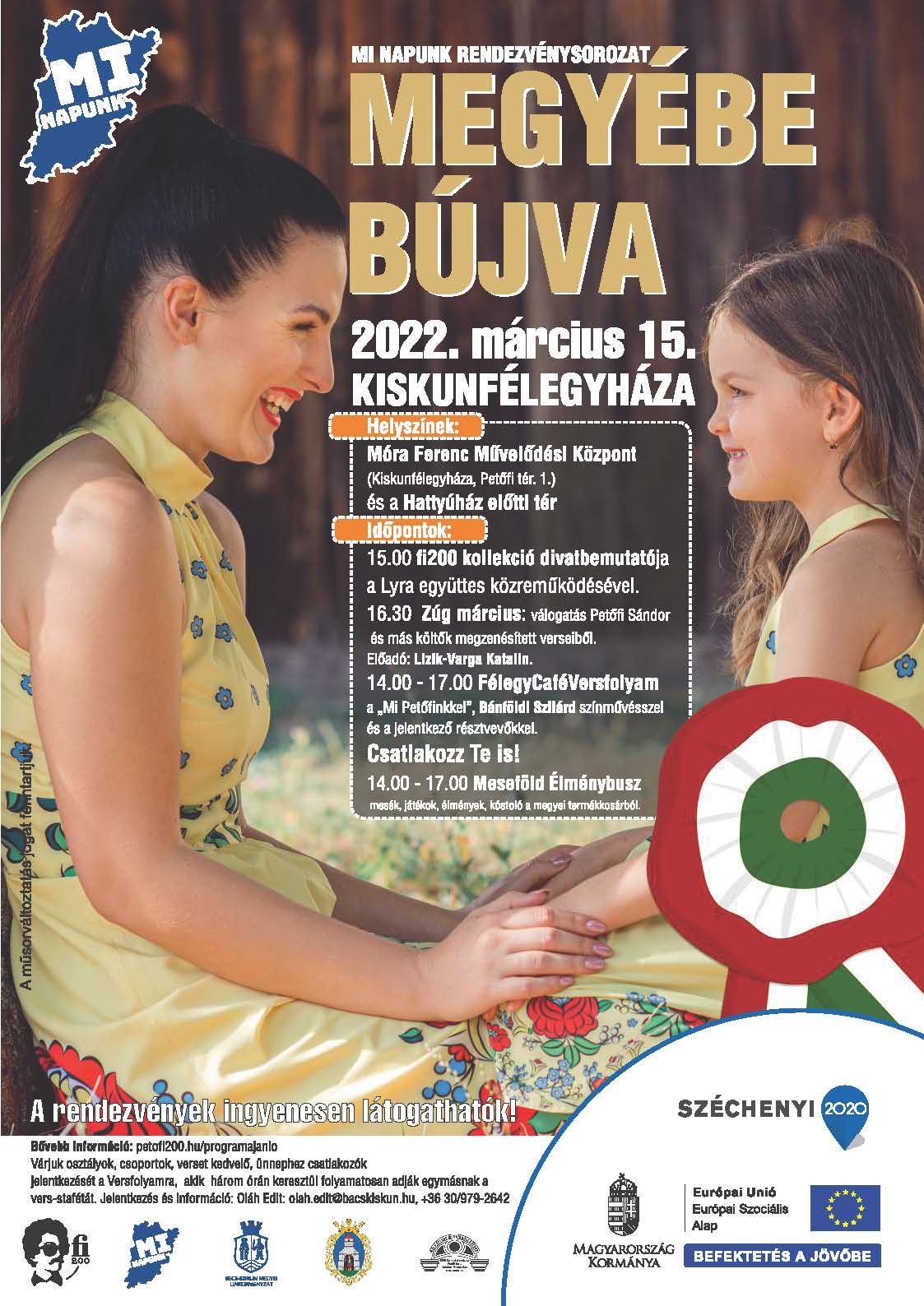 Nemzeti ünnepünkön Kiskunfélegyháza ad otthont a Mi napunk programnak, amely a Bács-Kiskun Megyei Önkormányzat hagyományos, lakóhelyünkhöz, megyénkhez való kötődésünket erősítő rendezvénye. Szeretettel hívnak mindenkit a rendhagyó programokra március 15-én, kedden 14 és 17 óra között a művelődési központba, illetve a Hattyúház előtti térre.