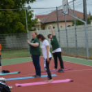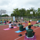 Az ingyenes programra reggel 9-órára várták az érdeklődőket. Az éjszakai esőzésnek köszönhetően felfrissült levegő, a kellemesen melegítő napsugarak és a kosárlabda pálya minőségi atletikus burkolattal ellátott felszíne ideális környezetet biztosított a jógázók számára. A regisztrációt követően a megjelentek Fricska Irén és Sebők-Vakulya Gizi jógaoktatók vezetésével merülhettek el a jóga világában.