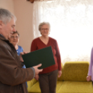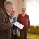Veronka néni két lányával az oldalán fogadta a kedves vendéget, aki a virágcsokor mellé még átnyújtotta Orbán Viktor miniszterelnökünk által aláírt emléklapot is.
