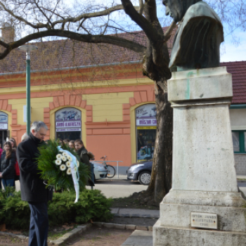 Koszorúzás Móra Ferenc szobránál