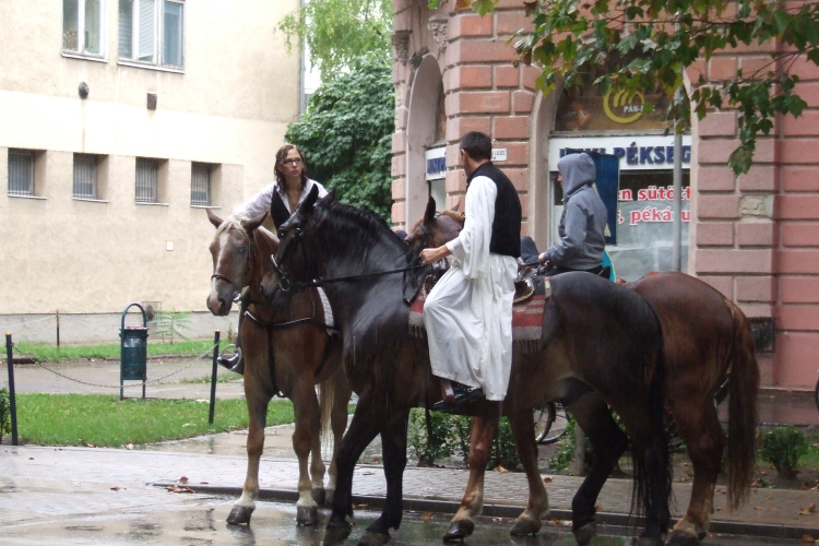 Bőven ontotta az ég az áldását a gazdaköri felvonulókra ma (augusztus 20-án) a főutca platánfái alatt. A szentmiséről kiáramló tömeg azonnal esernyőt nyitott és csatlakozott a felvonulók sorához, így a létszám gyorsan felduzzadt. A nézelődők is igyekeztek menedéket találni az eső elől, de elég nehéz vállalkozás volt úgy ha látni is szerettek volna valamit a felvonulókból.