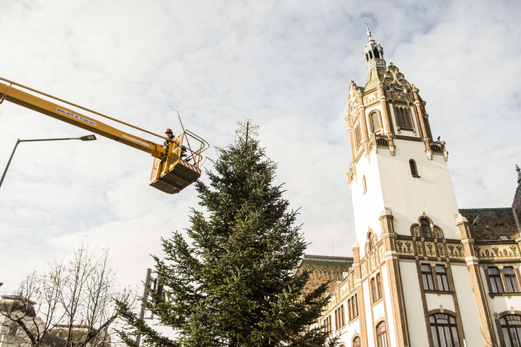 Ma (november 27-én) került a helyére és kezdte meg ünnepi öltözködését a 15 méter magas normann fenyő, melyet dr. Fehérvári István ajánlott fel városunknak. Fotók: Félegyházi Közlöny