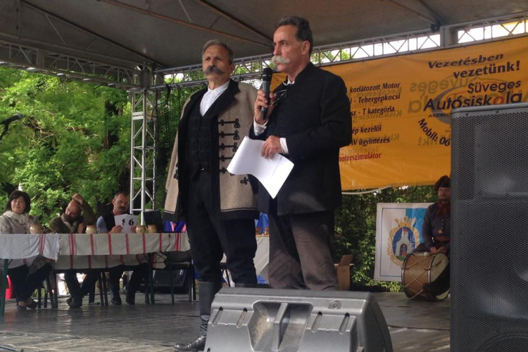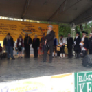 Az égből ömlő "áldás" nem jött igazán jókor, mert a VII. Kunsági Bajuszfesztivál megnyitóját nem lehetett megtartani az eredetileg tervezett helyszínen (a Béke téren), a könyvtár épülete szolgáltatta a mentsvárat az eső elől. Kora délután azonban kikacsintott még a nap is a felhők közül, pillanatok alatt felszáradt az út, a sokadalom pedig kimerészkedett az utcákra. Benépesült a városközpont nézelődőkkel, Langaléta Garabonciásokkal, zászlóforgatókkal, akik látványos bemutatóval kedveskedtek a nagyérdemű közönségnek.