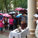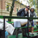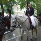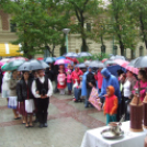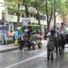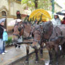 ...zengett a dal a Kossuth utcán, méltán tükrözve az időjárást. Mosta az eső a szüreti felvonulókat, akik mit sem törődve ezzel, vidáman vonultak végig a platánfákkal szegélyezett főutcán, hogy megszenteltessék borukat a Szent István templom előtt. A két gazdakör már a kora reggeli órákban gyülekezett a Nagyszőlő-Úti Óvoda előtti téren és a Haleszi Gazdakörnél, majd közösen indultak útnak a városba. A borszentelést követően a Polgármesteri Hivatal előtt a fogatok és csikósok bemutatása után visszaindultak az E5-ös út - Bercsényi u. - Izsáki u. és Majsai úton a Haleszi Gazdakörnél felállított sátorhoz, ahol bállal folytatódott a mulatság.