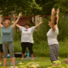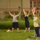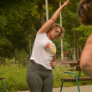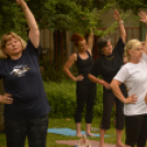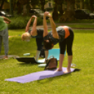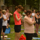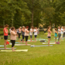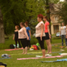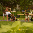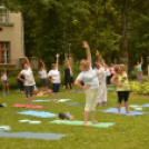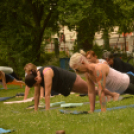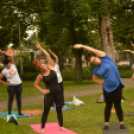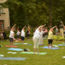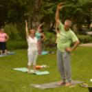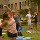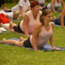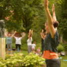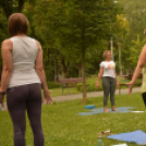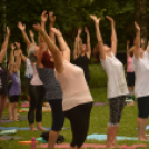 Hat oktató irányításával gyakoroltak együtt a jóga iránt érdeklődők a Jóga Világnapja alkalmából június 22-én (szombaton) a Hősök Parkjában.