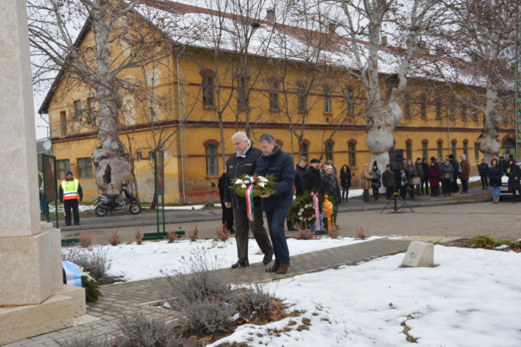A február 23-án tartott megemlékezésen a himnusz elhangzása után először Balla László alpolgármester osztotta meg gondolatait: