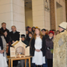 „A mai adventi gyertyagyújtás több szempontból is különleges. Az adventi gyertya lángját a mai napon nem szokásosan fogjuk meggyújtani, hanem egy egészen különleges lángról veszünk tüzet. Ez a láng azért különleges láng, mert nem a zsebünkben lévő gyufából ered, nem is a gáz öngyújtóból, hanem ez a láng kis kerülővel, igen körülményesen, de Betlehemből érkezett. Onnan, ahol az első éjszakán fölragyogott az igazi fény, az igazi világosság. „ – mondta Hajagos Gyula, a Szent István templom plébánosa a gyertyagyújtási ünnepségen.