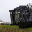 Hárman sérültek meg, amikor személyautó és teherautó ütközött össze az esőben, az M5-ös autópályán Kiskunfélegyháza határában. (Képek: HIROS.HU - Donka Ferenc)